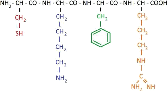 Полипептидная цепь состоит из остова (скелета), имеющего повторяющуюся последовательность и отдельных боковых цепей (радикалов). Последовательность аминокислот в цепи изображают, начиная с N-конца. Единственным отличием одних белков от других является сочетание радикалов, входящих в него.