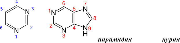 Гетероциклы, лежащие в основе структуры азотистых оснований: