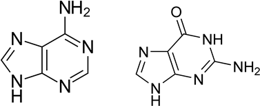 К пуриновым азотистым основаниям относят аденин (6-аминопурин) и гуанин (2-амино-6-гидроксипурин).
