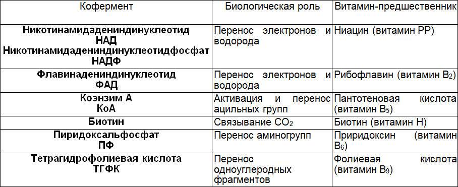 Таблица 7. Взаимосвязь витаминов и коферментов