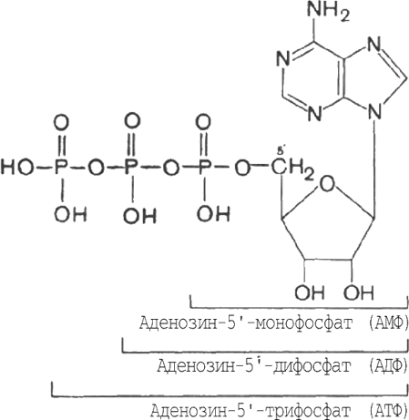 Аденозинтрифосфат (АТФ, аденозинтрифосфорная кислота) – нуклеозидтрифосфат содержащий аденин, рибозу и три остатка фосфорной кислоты.