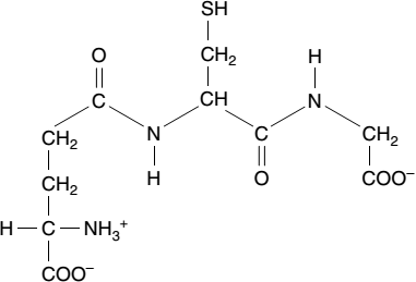 Глутатион – трипептид, состоящий из остатков цистеина, глицина и глутаминовой кислоты и участвующий в окислительно-восстановительных реакциях (аминокислотные остатки Глу и Цис связаны γ-пептидной связью).