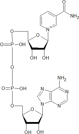 Никотинамидадениндинуклеотид (НАД+) – кофермент дегидрогеназ (оксидоредуктаз), состоящий из никотинамидного и аденилового нуклеозидов, связанных через остатки фосфорной кислоты; окисленная форма НАД+ способна восстанавливаться до НАДН(H+).