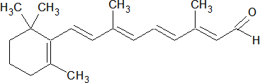 Ретиналь – изопреноид, альдегидная форма витамина А1, присутствует в белке родопсине в виде цис-ретиналя, который в процессе светоощущения изомеризуется в транс-ретиналь; дефицит ретиналя обусловливает нарушение темновой адаптации.