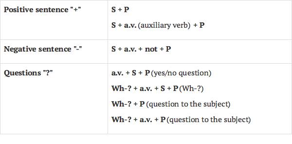 The word order is fixed: the subject (S), the predicate (P), the Object (O), the Adverbial Modifier (Adv).