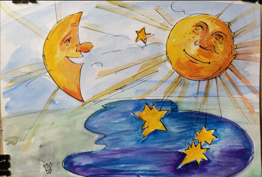 Когда наступило утро, и на небо заступило Солнце, они обратились к нему за помощью: «Солнышко родное, ты согреваешь нас своим теплом, даришь свет, который мы накапливаем в течение дня и храним до следующего утра. Отправь нам свои лучики, которые творят блики на водной глади реки, превращаясь в разноцветные искорки». Солнце согласилось помочь рыбкам и заиграло лучиками-зайчиками, отражаясь в воде, прыгая по листочкам растений на берегу, подбрасывая золотые искорки в разные уголки реки.