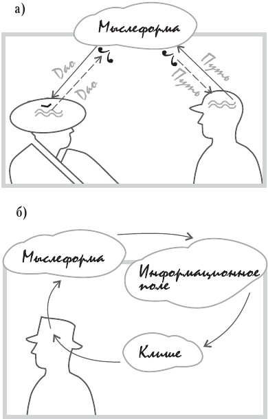 В Тоническом слое мыслеформы, попадая в информационные поля, бумерангом отражались в виде клише памяти детей Зон (рис. 11б).