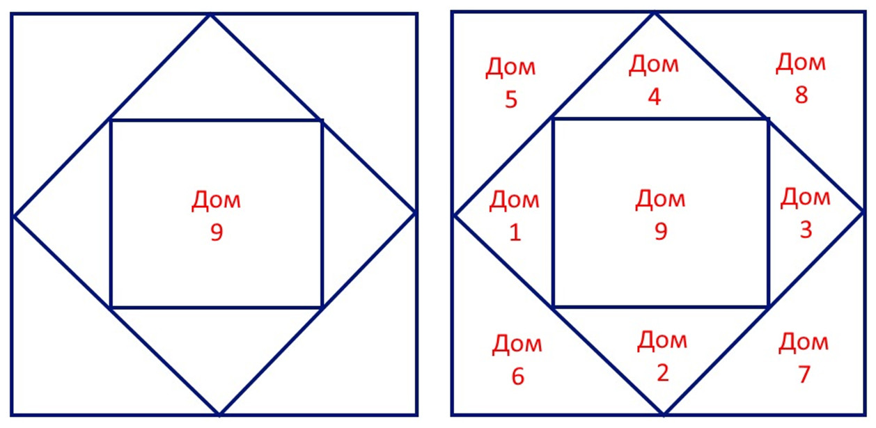 В Квадрате Судьбы Дом символизирует определённую область жизненного опыта, и каждый из девяти Домов несёт в себе уникальные характеристики и темы, которые проявляются в нашей повседневной жизни.