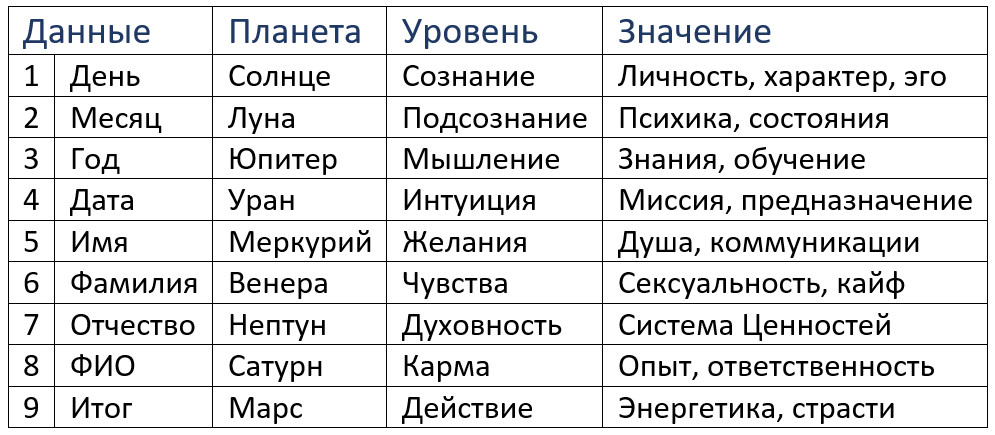 Каждое Число находится под Управлением одной из Планет и отвечает за определённые Уровни (чакры, тонкие тела) и Сферы жизни.