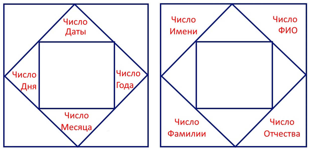 • Во внешний квадрат ставятся числа ФИО