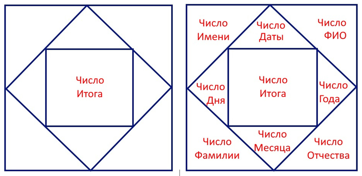 В центре (Дом 9) находится Итоговое число Даты и ФИО.