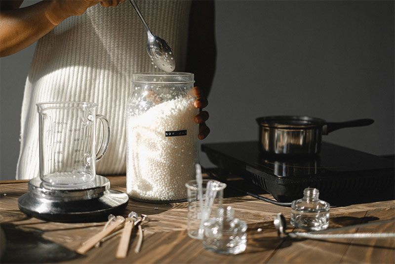 Самый популярный вид воска на данный момент. С тех пор как люди стали стремиться ко всему органическому и натуральному, парафин стал не в почете. Свечи из парафина сейчас можно найти в основном в масс-маркете, они будут недорогими, но речи об органике и хорошей отдаче аромата здесь не идет. Соевый воск же производится из соевых бобов и является органическим продуктом, не несет в себе никакого вреда. Существует несколько производителей соевого воска, эти воски немного отличаются по своим свойствам, температуре плавления и рекомендуемой температуре заливки в контейнер/форму. Лучше пробовать разные, пока не найдете для себя «тот самый».