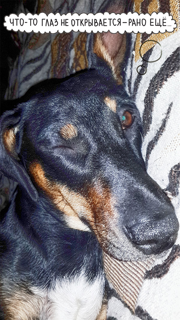 В ответ Дамка открыла один глаз, посмотрела на Димку и сладко зевнула.