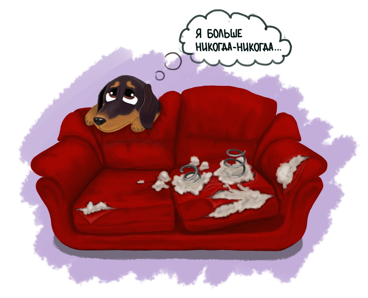 Тут подоспел и Димка. Картина, которую он увидел, действительно впечатляла. Диван, возле которого собрались родители, по-прежнему стоял в углу у стены, но это был уже не тот диван, к которому все привыкли: в центре, прямо там, где обычно сидел Димка, зияла огромная дыра, из которой торчали лохмотья какой-то серой ваты. А на полу возле дивана валялись куски диванной обшивки.