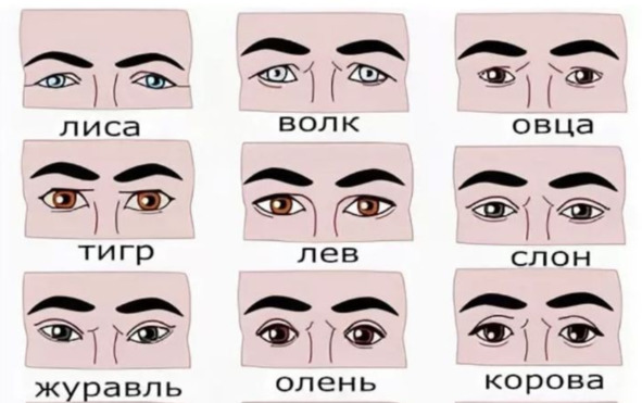 – Кошачьи глаза – глаза среднего размера имеют двойные веки. Тон радужной оболочки – темно-желтый. Данные глаза олицетворяют ненадежность, а также плохой характер.