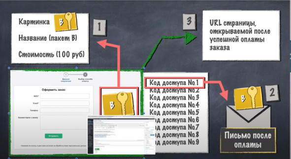 Его задача сделать так, чтобы пользователь заплатил деньги, проконтролировать процесс оплаты и если все успешно, отправить код доступа(в MemberLuxe Уровень доступа 1).