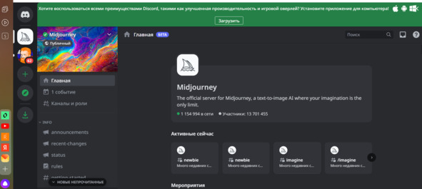Я кликаю по ссылке https://www.midjourney.com/home/
