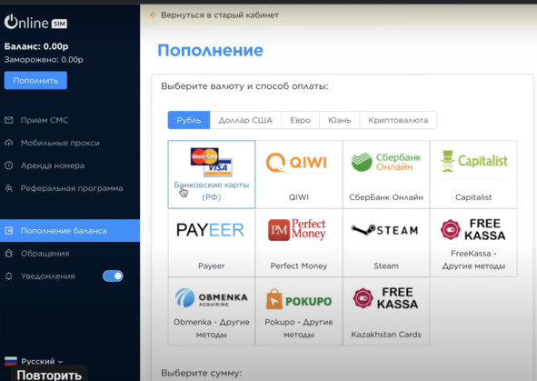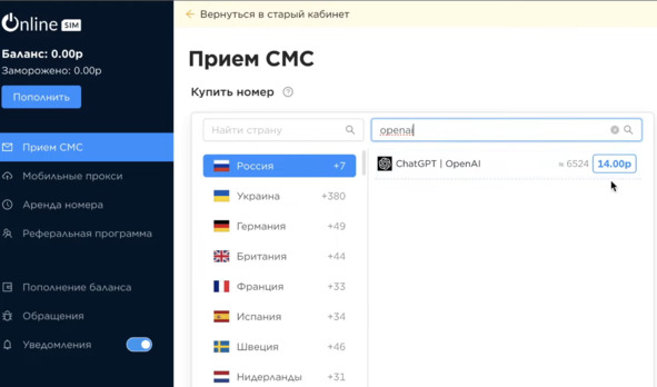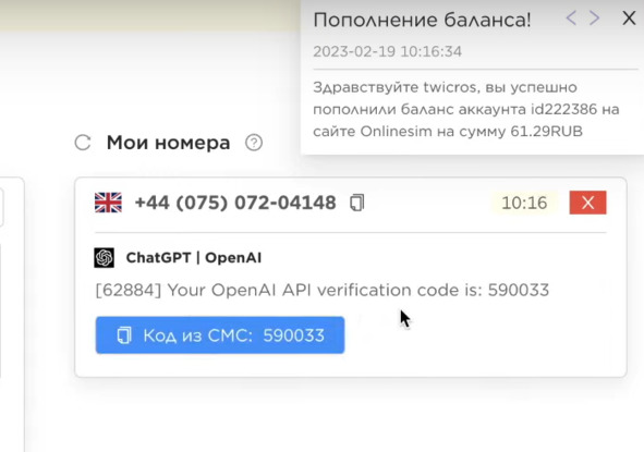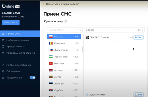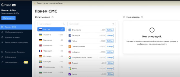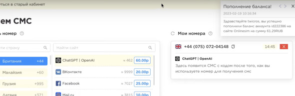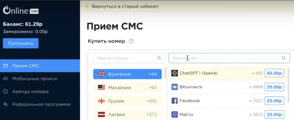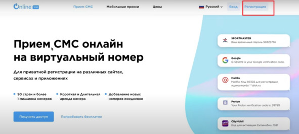Так же понадобится зарубежная sim-карта и для этого можно использовать одноразовую онлайн симку с сайта: https://onlinesim.ru/