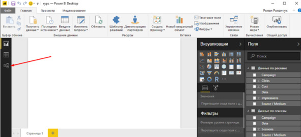 Для создания отчета необходимо подключиться к коннекторам Google Analytics или Яндекс Директ. Если выбирается Google Analytics, все метрики будут легко доступны. Однако, при использовании Яндекс Директ требуется сторонний коннектор или скачивание данных в Excel таблицу из рекламного кабинета и их импорт в Power BI.