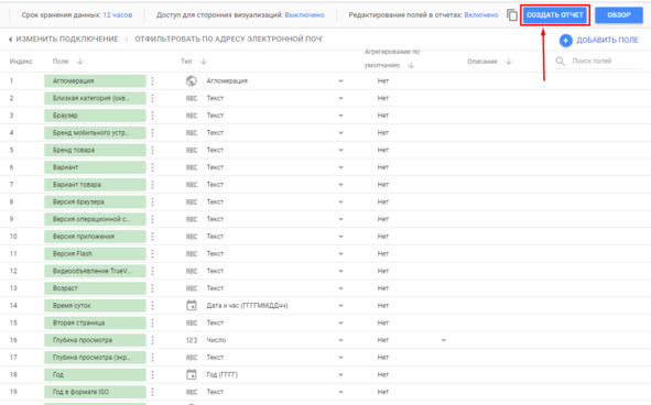 Теперь вы сможете видеть сводные данные, какие будут передаваться, а также использоваться в Data Studio.