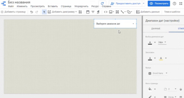 Далее мы добавили диапазон данных, чтобы в дашборде можно было регулировать временной период.