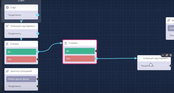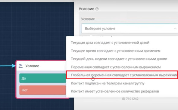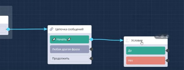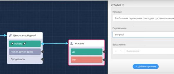 Для этого я после кнопки начать создам блок Условие и выбираю условие: