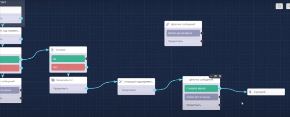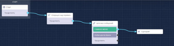 Бот подключен и перехожу в сценарий.