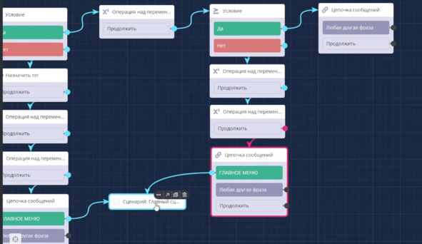 Затем добавлю кнопку Главное меню и добавлю сценарий, где выбираю Главный сценарий.