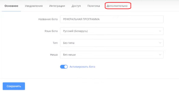 Кликаю сохранить. В Настройках кликаю Запустить. Теперь как только у пользователя появится реферал, он сразу получит 100 баллов.