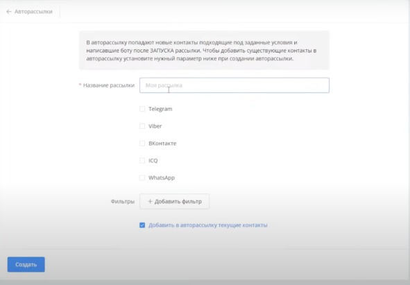 Захожу в раздел Авторассылки и кликаю Создать первую: