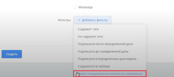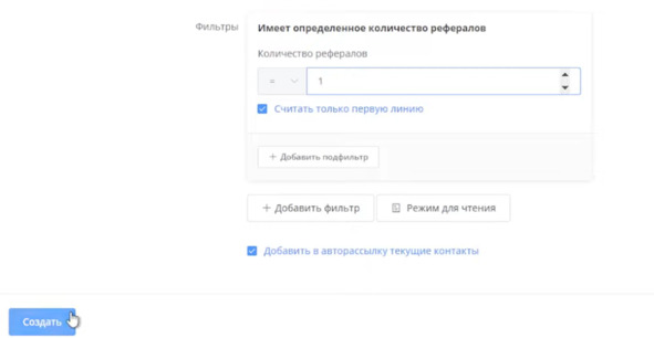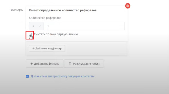 Могу добавить фильтр Имеет определенное количество рефералов: