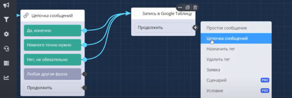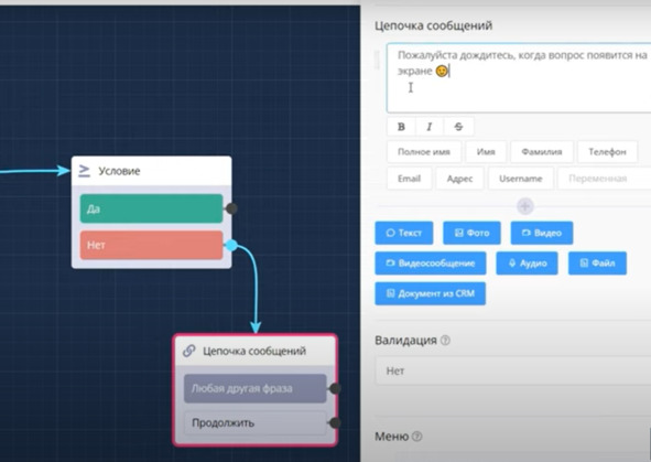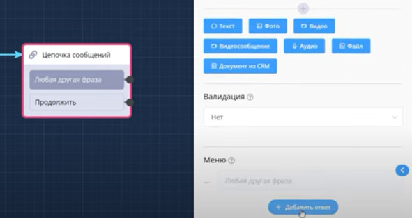 Добавляем цепочку сообщений: