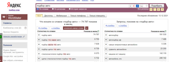 Сервис Yandex wordstat assistant может помочь работать с Wordstat.