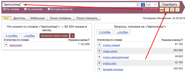 Изначально Yandex wordstat демонстрирует статистику по всем типам устройств. Однако мы можем посмотреть статистику отдельно по каждому типу устройств.