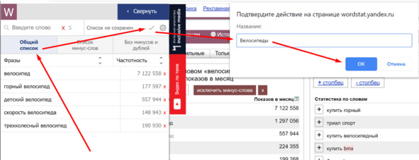 Копирую их и вставляю отдельно в таблицу. Затем проверяем частотность в Вордстат. Если видите низкую частотность, то сокращайте количество списков слов: