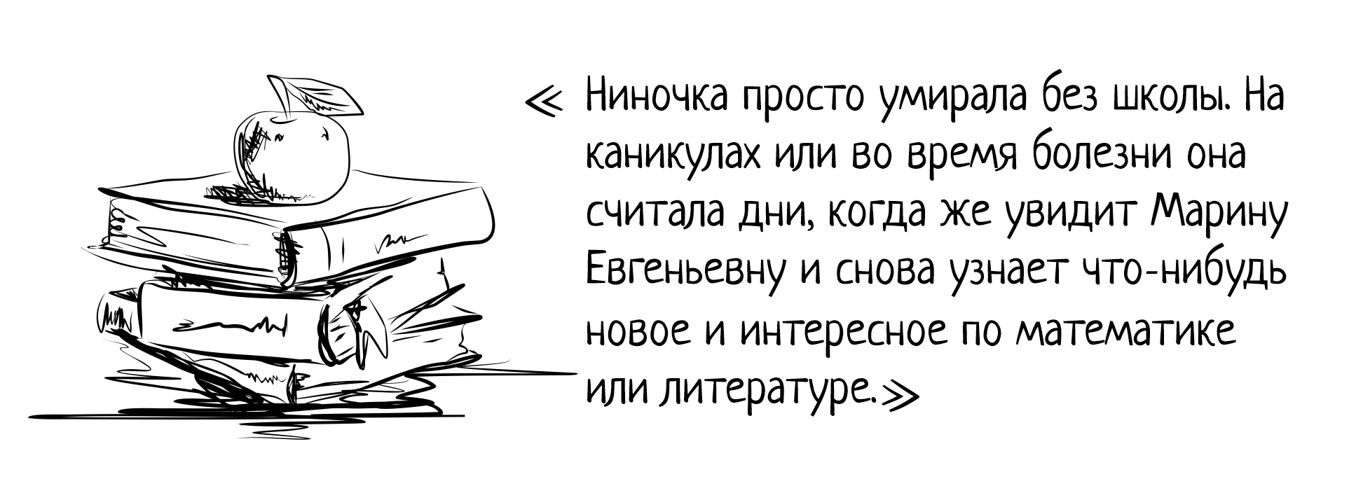 Нина возненавидела свой класс и уроки математики, которые, слава богу, были только два раза в неделю, правда, по два часа. Один раз она решила просто сбежать с урока. Но ее поймала в коридоре Горшкова: