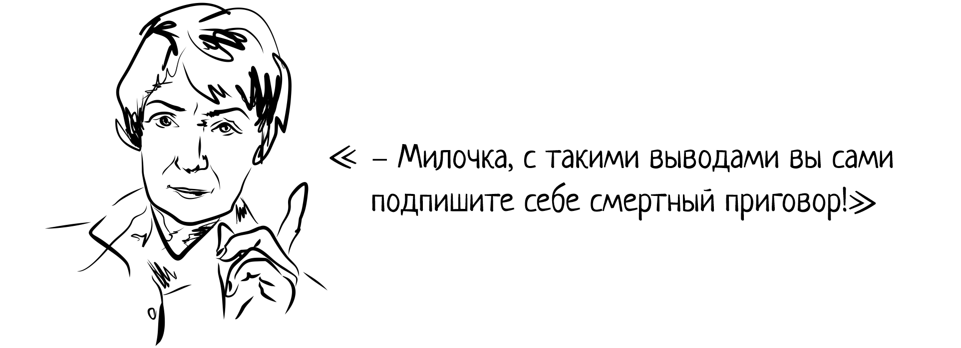 – Милочка, с такими выводами вы сами подпишите себе смертный приговор! – выкрикнула Горшкова, затем подошла к двери и открыла ее, как бы тем самым выгоняя коллегу.