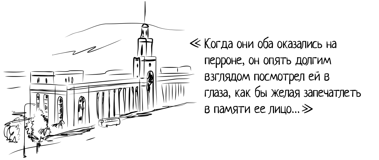 Лена Кулькова решила наставить любовную историю Нины на правильный путь и потребовала, чтобы Нина объяснилась Славке в любви. «Ты ведешь себя, Нина, как слепой котенок, – твердила Лена. – Это так долго продолжаться не может. Ты себя изводишь, всё время думаешь о нём, а он ничего не знает». Нина пыталась оправдываться: «А как ты себе это представляешь? Да я с ума сойду от позора. Ну надо же – в любви первой признаваться. Где это видано? А если даже я и признаюсь, а он мне скажет, что меня не любит… Да я умру!» Но Лена не унималась: «Вот смотри, Татьяна из “Онегина” и то призналась. И ничего. Не умерла!»