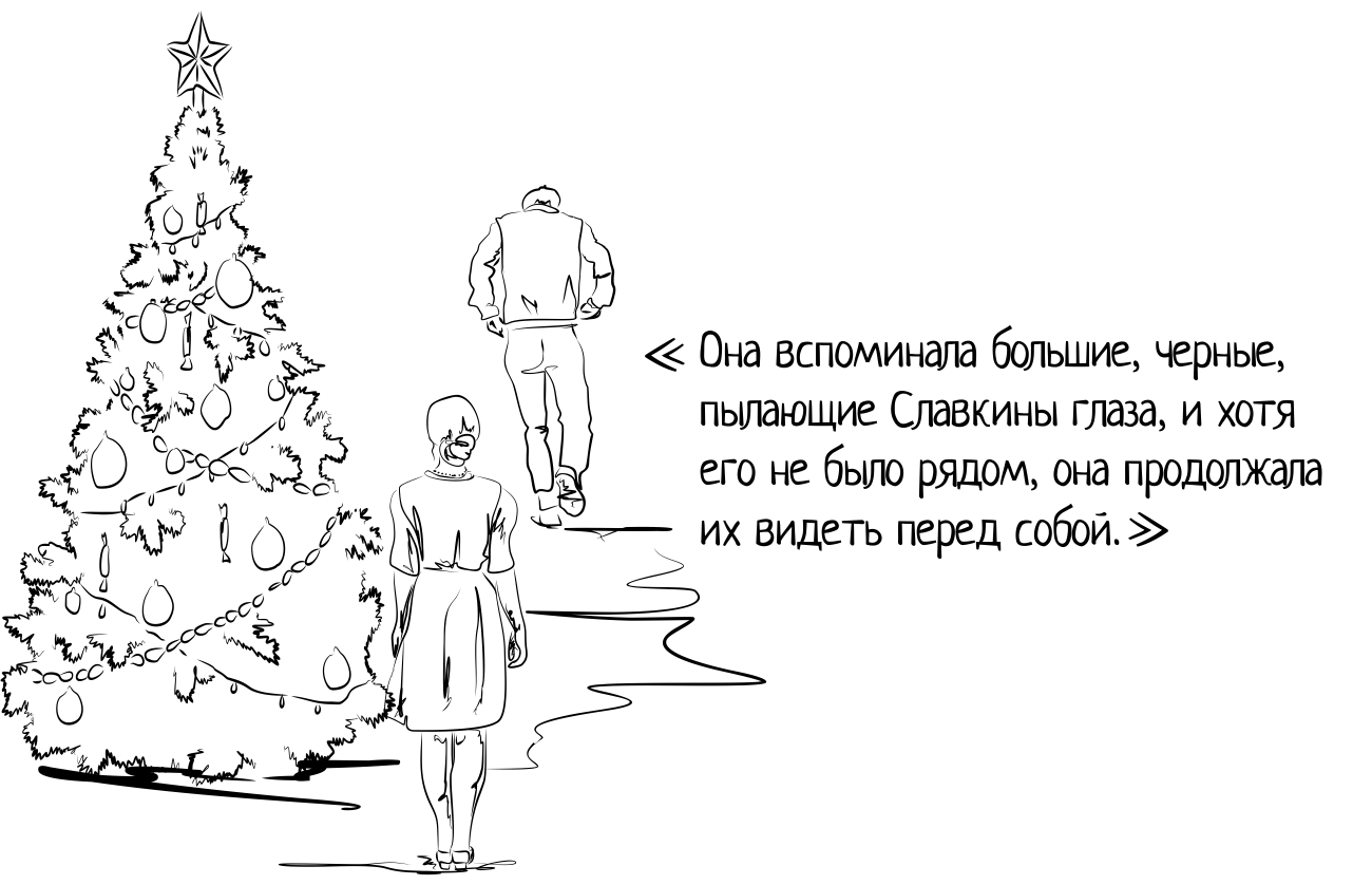 Уже закончилась музыка и все заняли свои места за праздничными столами, а Нина продолжала стоять в середине зала. Что-то произошло. Но что, она еще не поняла. Она вспоминала большие, черные, пылающие Славкины глаза, и хотя его не было рядом, она продолжала их видеть перед собой. Словно не было ничего вокруг – ни музыки, ни огней, ни шума – только Славкины глаза. Как-то сразу весь этот вечер потерял для Нины интерес и она, одевшись, пошла домой. Но даже дома, засыпая, она видела эти глаза перед собой. Нина, с нетерпением ожидающая зимние каникулы, теперь с таким же нетерпением ожидала начала занятий, чтобы опять увидеть Славкины глаза. Сначала она боялась признаться самой себе, но вскоре уже совершенно уверилась, что влюбилась. В Славку.