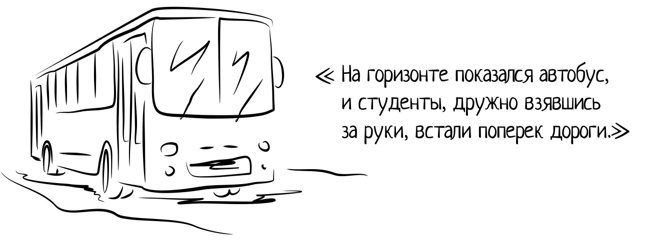 На остановке, как и ожидалось, скопилось огромное количество народу. Один высокий черноволосый молодой человек закричал: «Вот что, братцы! Сейчас появится следующий автобус, и мы все возьмемся за руки и преградим ему движение. Иначе мы отсюда не уедем! Не будет же он нас давить!» «Молодец, Бабенко! Так и сделаем», – заголосили другие студенты. От скуки, одолевшей Нину, не осталось и следа. Она оживилась и протиснулась вперед, желая принять участие в планируемой акции.
