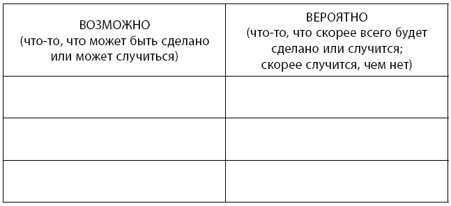 Заполните таблицу для каждого ВЕРОЯТНО и ВОЗМОЖНО: