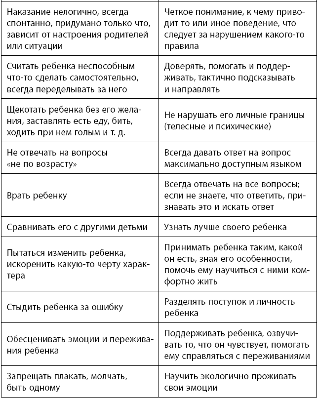 Я думаю, каждый родитель интуитивно догадывается, что нужно делать для поддержания теплых, доверительных детско-родительских отношений. И здесь я лишь приведу небольшую таблицу-шпаргалку вам в помощь.