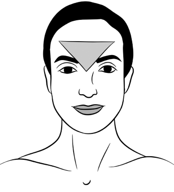 Есть специальные приемы, помогающие научиться контролировать мимику. Например, если вы не можете «отучить» лоб включаться в работу, вырежьте из бумаги небольшой треугольник, смажьте кремом или лосьоном и приклейте его в область середины лба (рис. 1).
