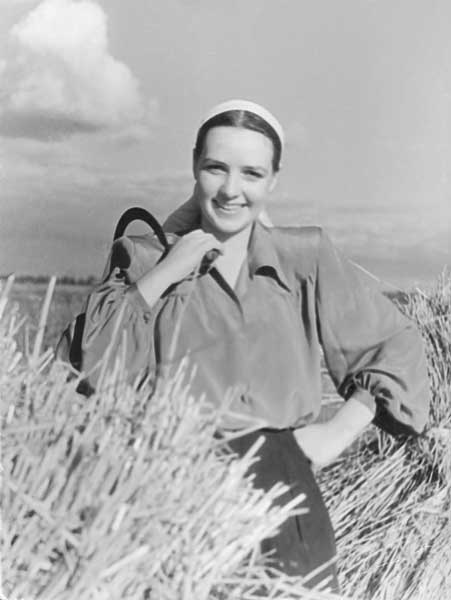 Красноречивый пример – мой любимый снимок, где мама запечатлена на фоне аккуратного стога сена. С серпом в руке. Хрестоматийный сельский антураж подчеркивает ее изумительную красоту. И хотя серп она держит вполне по-человечески, не задирая к небу, меня не покидает ощущение незавершенности идеологического гештальта: фотографической инсталляции недостает конгениального по красоте рабочего – разумеется, с молотом.