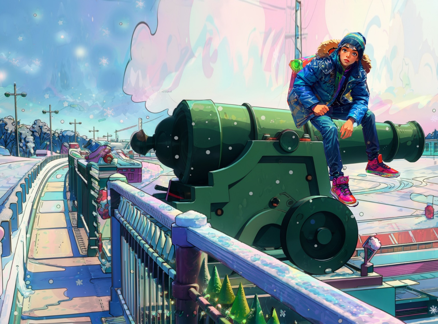 Роберт переместился не рядом, а параллельно на поверхность пушки, чуть с неё не свалившись. Он, не теряя времени запустил Сноблика проверить содержимое дула, так как к нему уже неслась толпа людей через автомобильный поток. Сноблик вылез ни с чем. Люди поняли, где именно нужно искать, и толпа разделилась на несколько групп направившись к пушкам в разных частях моста. Тут Роберт увидел Романа, восседавшего на ещё одной пушке с маленьким ребенком в своих руках. Этот ребенок держал в руках белоснежное яйцо, заливаясь смехом. Роберт бросился к своему другу. Их окружали с разных сторон в том числе и подъемная площадка с ведущим поднимавшемся с низу.