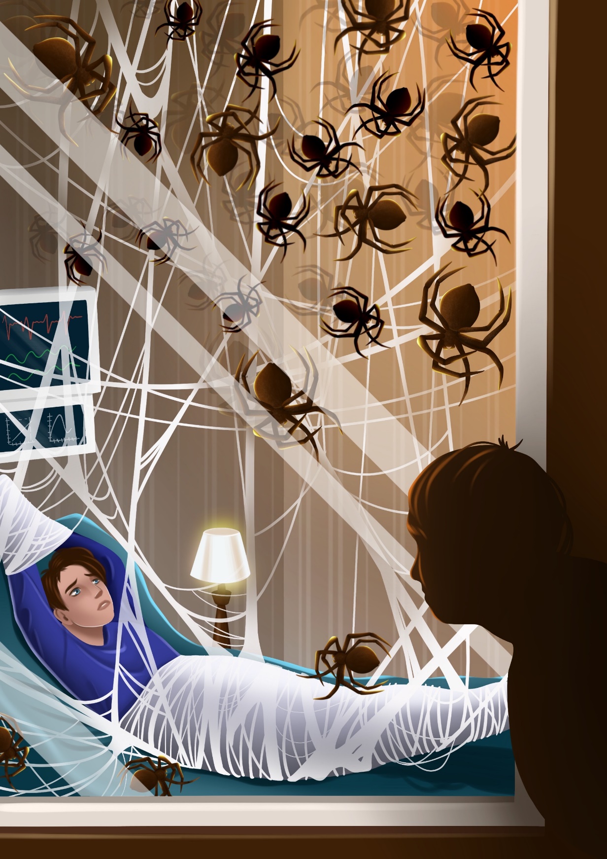 Тёмно-волосый Стефан со светлыми испуганными глазами дёргался на кровати в попытках освободиться. Но пауки наступали и заполонили собой почти всё пространство палаты, где стояла кровать с медицинскими приборами.
