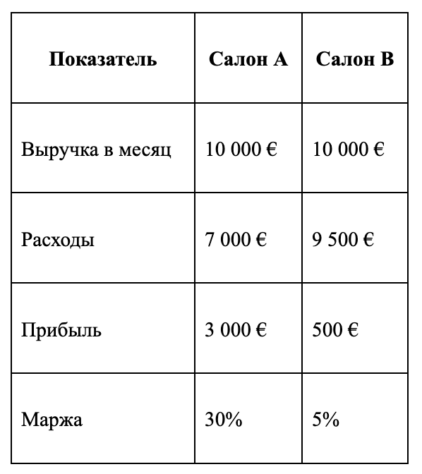 Пример из жизни: два салона с одинаковой выручкой – кто зарабатывает больше?