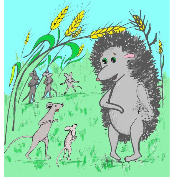 Из зарослей вынырнула мама-мышь. Нежно обняв сыночка, она повернулась к ёжику.