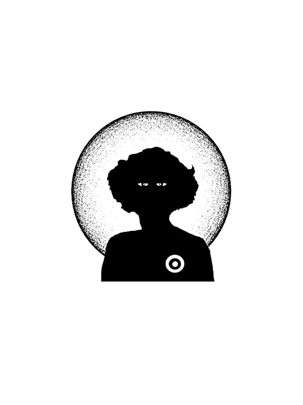 Второй похожий силуэт, развернутый в полупрофиль, безликий и грозный.