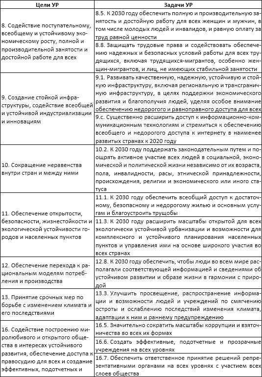 Таблица 1.7. Цели и задачи устойчивого развития в обследовании ООН [59]
